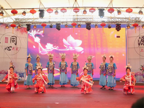 尽管当天上海发布了橙色高温预警,但高达40摄氏度的气温也没能阻挡观众的热情。下午5点,巡演准时开始,活动以《震天鼓舞》、《唱不尽的棉花情》开场,特色民族文化节目一亮相就吸引并震撼了现场观众,他们被欢快的水族音乐和热情洋溢的水族舞蹈迷住了,不时地拿起手机拍照。